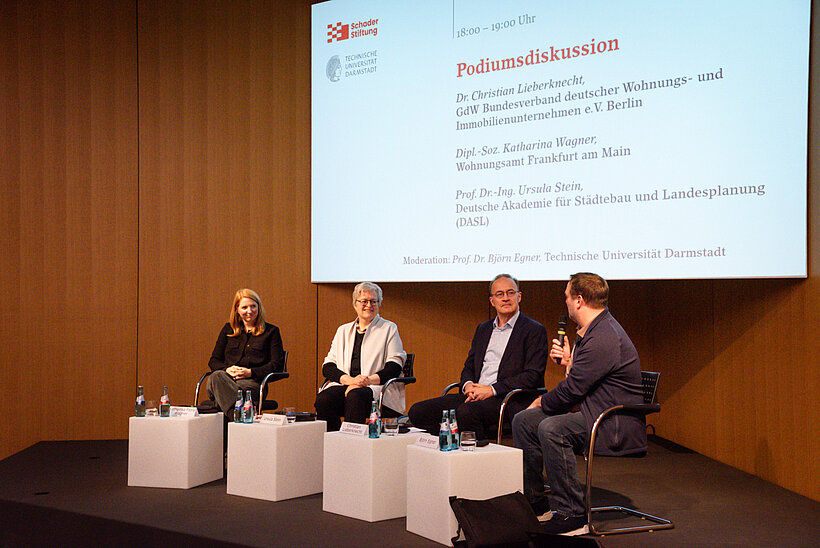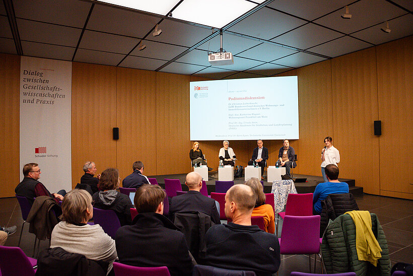 Gemeinsam mit dem Institut Politikwissenschaft der TU Darmstadt lud die Schader-Stiftung im Rahmen eines Autor*innen-Workshops zum Thema „Lokale Wohnungspolitik in der Krise“ zu einer Podiumsdiskussion für Fachpublikum ein. Im Mittelpunkt stand die Frage, wie sich aktuelle Krisen – von wirtschaftlichen Unsicherheiten über Klimaschutzanforderungen bis hin zu gesellschaftlichen Veränderungen – auf das Baugeschehen und die Rahmenbedingungen der Wohnungspolitik auswirken.