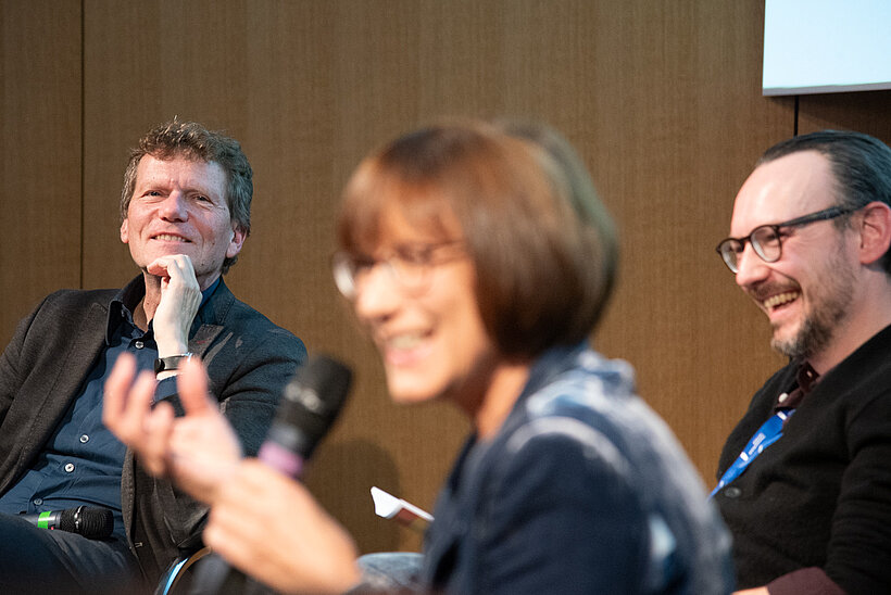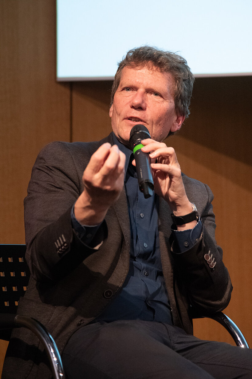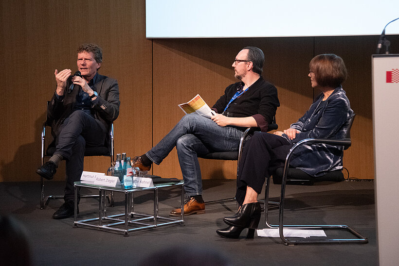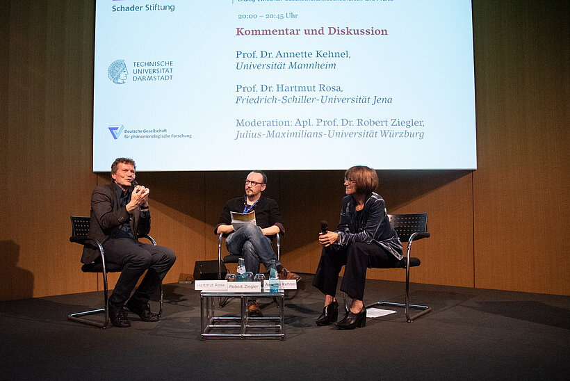 Im Anschluss kommentierte Annette Kehnel den Vortrag und diskutierte mit Hartmut Rosa über gegenwärtige und vergangene Krisen. Auch Alternativen kamen zur Sprache, die nicht nur aus aktuellen Krisen und Verlusterfahrungen resultieren. Die Moderation übernahm Robert Ziegler.