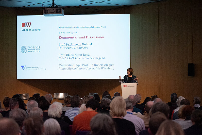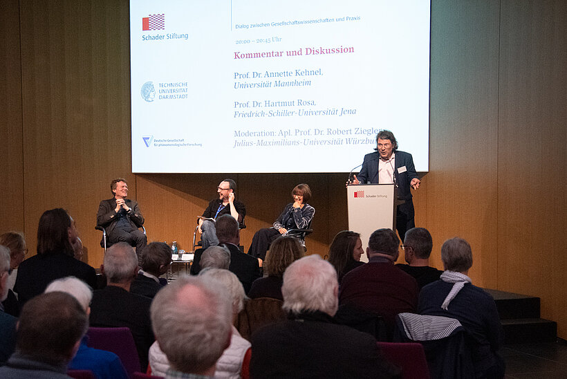 Die Jahrestagung der Deutschen Gesellschaft für Phänomenologische Forschung (DGPF) fand in diesem Jahr unter dem Titel „Krisis und Kritik“ in Darmstadt statt. Zu diesem Anlass lud die Schader-Stiftung gemeinsam mit der DGPF zu einer Abendveranstaltung mit Hartmut Rosa ein. Annette Kehnel kommentierte seinen Vortrag und kam anschließend mit ihm ins Gespräch.
