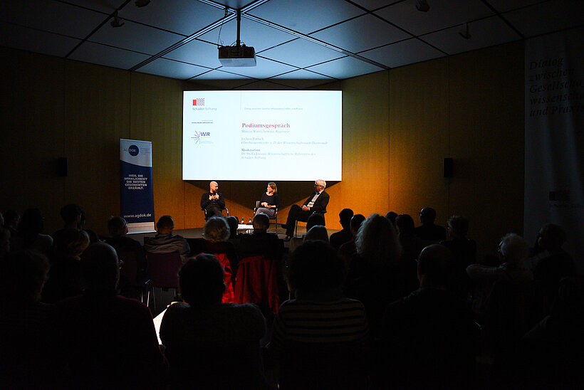 Im Rahmen von „LETsDOK 6. Hessischer Dokumentarfilmtag“ zeigte die Schader-Stiftung den Film „Das Deutsche Volk“. Im Anschluss fand ein Gespräch mit dem Regisseur Marcin Wierzchowski und Darmstadt Oberbürgermeister a. D. Jochen Partsch statt.