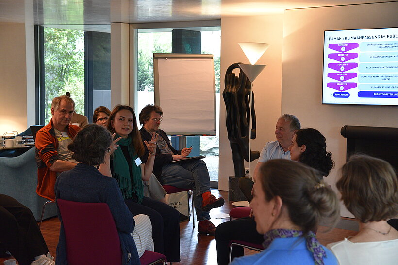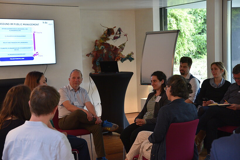 Über fünf Semester hinweg – von Oktober 2022 bis April 2025 – wurden Bildungsmodule entwickelt und erprobt, die Studierende Schritt für Schritt auf ihre Rolle in der kommunalen Klimaanpassung vorbereiten: vom Grundlagenwissen zu Klimawandel und Nachhaltigkeitszielen über anwendungsbezogene Themen wie Verwaltungsrecht und öffentliche Finanzen bis zur praktischen Projektarbeit mit Kommunen.