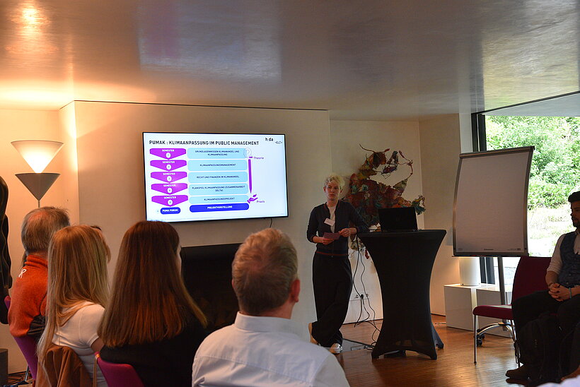 Klimakompetenzen für die Verwaltung von morgen: Wie bereiten wir die nächste Generation von Verwaltungsmitarbeiter*innen auf die Herausforderungen des Klimawandels vor? Das PuMaK-Projekt integriert systematisch Klimaanpassung in die Grundlagenausbildung des Studiengangs Public Management an der Hochschule Darmstadt. Im Workshop diskutierten wir, wie bedarfsgerechte Ausbildung gelingt: Von generischen Kompetenzen über fachbereichsübergreifendes Wissen bis zu Transfernetzwerken. Wir haben Erfahrungen aus drei Jahren Curriculumsentwicklung geteilt.
